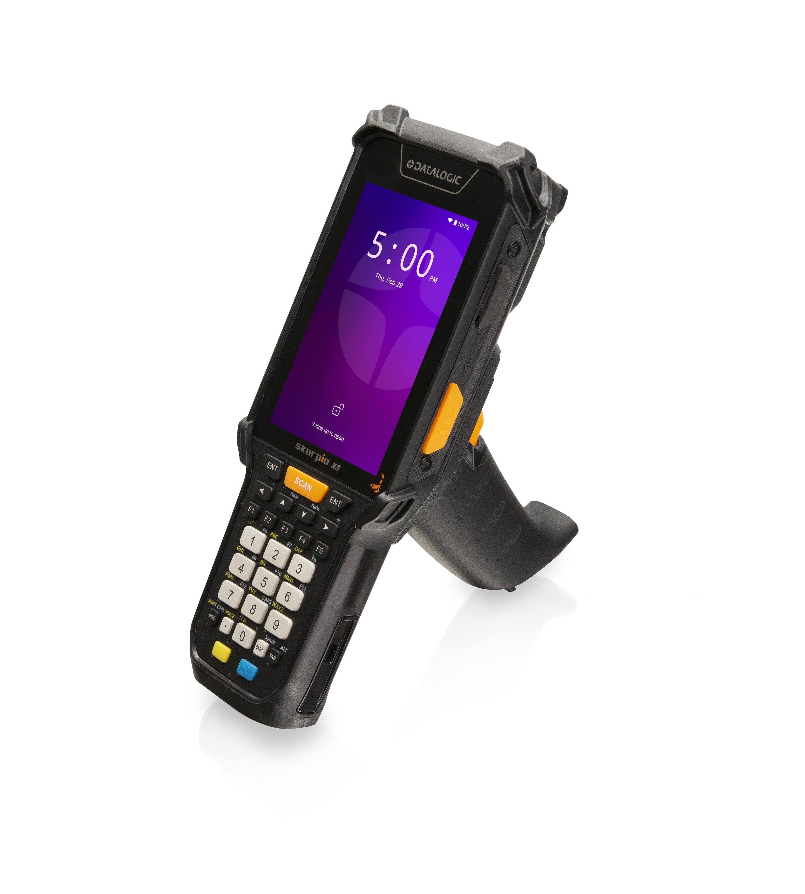 Skorpio X5 Pistol Grip, 802.11 a/b/g/n/ac, 4.3 display, BT V5, 4GB RAM/64GB Flash, 28-Key Numeric, Contactless, 2D Imager XLR, Android 10, with Extended Battery